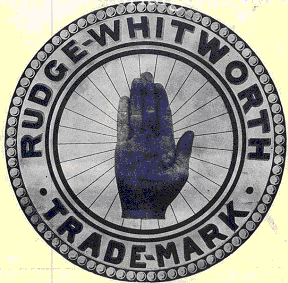 'Rudge-Whitworth - The Truth Behind the Hand' An Article Written for the Rudge Club Journal "The Radial" As Rudge Enthusiasts Club Archivist, one of the most frequent questions I get asked is "where does the Rudge red hand come from?". This question has come up several times in recent months, both from members, and a general non-member enquiry through the website, so I thought I should give some details. There are various misconceptions of where the hand comes from, & they all seem to circulate around the "Red hand of Ulster". The most common, being that it was added to the Rudge logo because they won the Ulster Grand Prix ! This is probably compounded by the fact that the 'Ulster' is arguably Rudge's most famous model, its easy to see why so many people would think this. Another 'Ulster' race which some people would believe the hand is associated, is the "Tour of Ulster" cycle race, and interestingly that event never began until 1956 !! One of the most imaginary stories I've seen however was that on the "Borrani Americas" website, the United States main agent for the modern day Borrani wheel company. They did at one time have a whole article on their website about the history of Borrani wire wheels & when referring to the hand in the trade mark they quite elaborately told a story of how Dan Rudge was related to Irish descendants & that the Red hand was a link back to this ! However the fact is the hand has nothing to do with Dan Rudge at all! In order to find the truth behind the hand, we need to go back to 1891 and the birth of the Pugh family's "Whitworth Cycle Company". The open hand superimposed on a bicycle wheel is in fact Whitworth's trade mark & is regarded as "the open hand of honesty". When Rudge & Whitworth amalgamated in 1894 to form Rudge-Whitworth Ltd, the Whitworth trade mark was carried over to the new company & remained right through to the end, including the Raleigh take over in 1943. It is not clear whether or not the hand was originally red, or if this came about later, as most illustrations of the Whitworth logo are shown in all black, and early versions of the Rudge-Whitworth logo show an almost real hand. Interestingly, I politely contacted the "Borrani